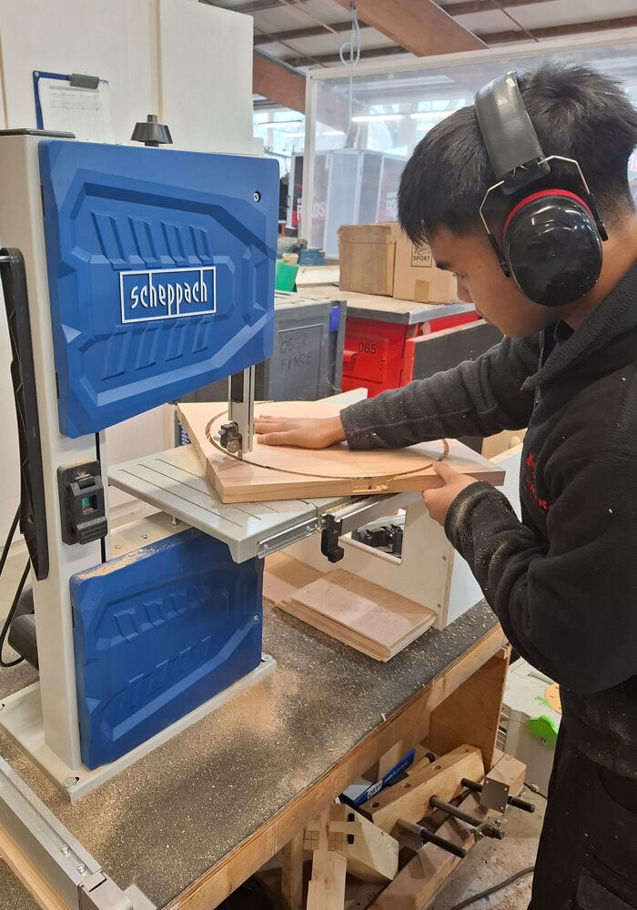 Jeder Arbeitsschritt – vom Anritzen über Sägen, Schmieren und Schleifen bis hin zum Lackieren - brachte neue Anforderungen mit sich. Unsere Nachwuchstalente meisterten diese souverän, fanden kreative Lösungen und entwickelten ihre Hocker Schritt für Schritt zu hochwertigen Einzelstücken.